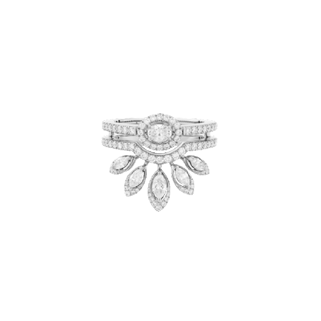 Alba Signature Ring crafted in 18K gold and set with marquise-cut, oval cut and round brilliant diamonds.