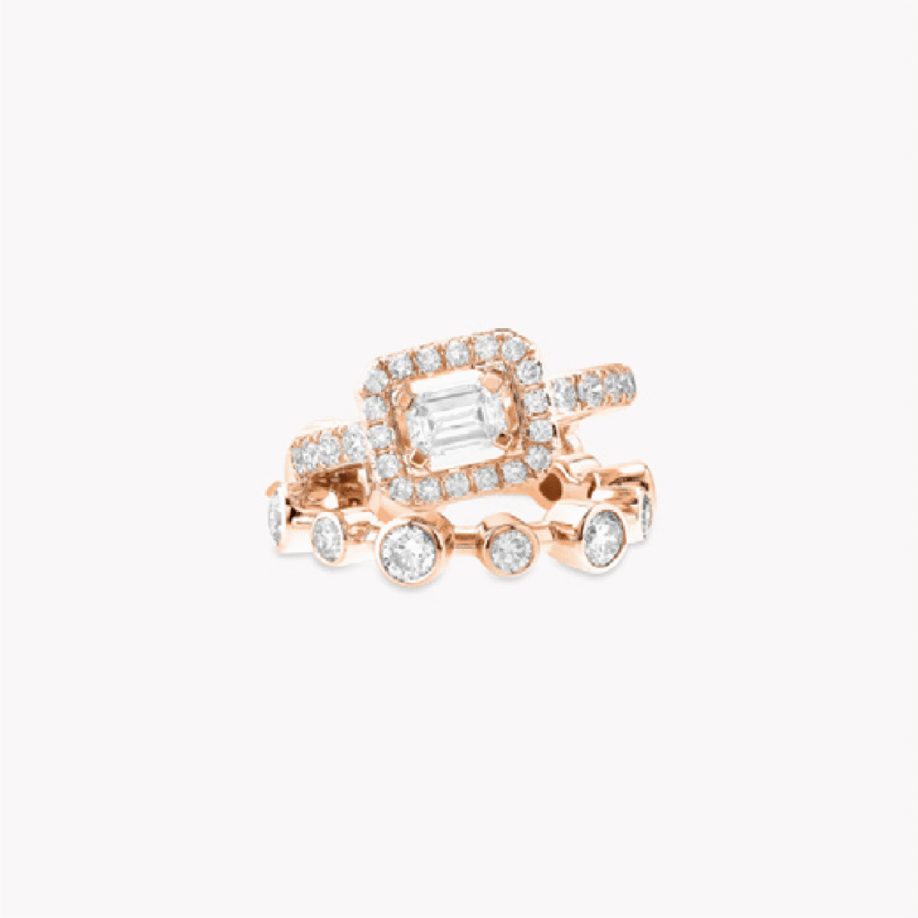 Trilogie Forever Single Earring crafted in 18K white, rose or yellow gold and set with r ound brilliant and emerald cut diamonds.